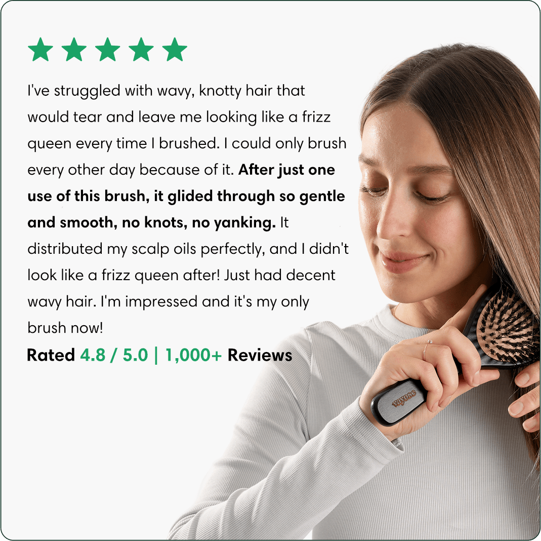 I've struggled with wavy, knotty hair that would tear and leave me looking like a frizz queen every time I brushed. I could only brush every other day because of it. After just one use of this brush, it glided through so gentle and smooth, no knots, no yanking. It distributed my scalp oils perfectly, and I didn't look like a frizz queen after! Just had decent wavy hair. I'm impressed and it's my only brush now!