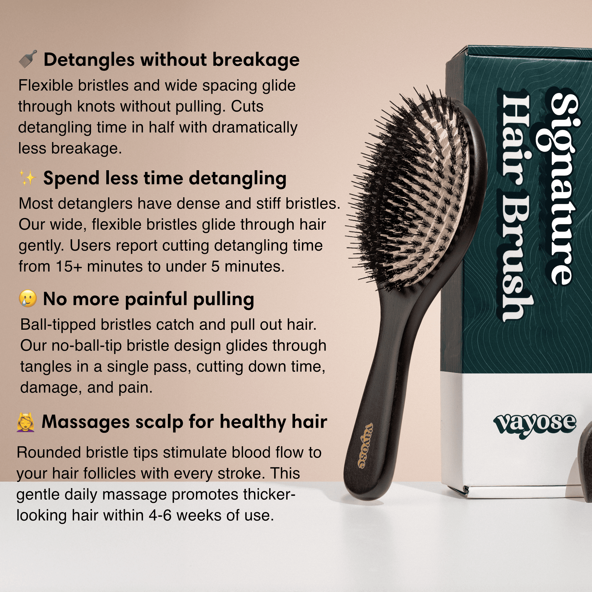 I have thick hair that always tangles into painful knots. I got this brush 2 weeks ago and wow... Detangling is so much faster and easier now. And I thought my old detangler was doing a decent job! Vayose has transformed my hair and saved me so much time.