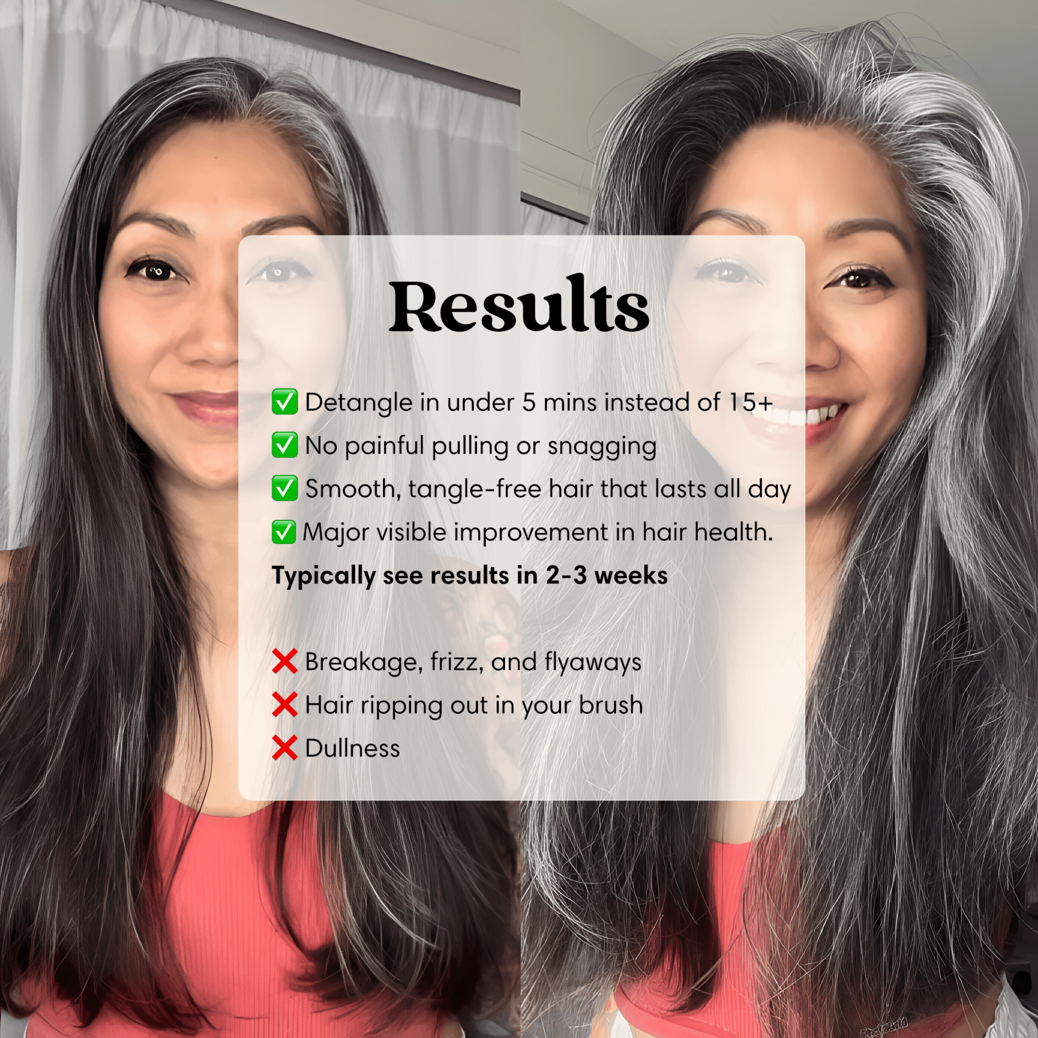 Your hair experiences less daily breakage as gentle detangling replaces harsh pulling. You'll notice smoother, easier brushing right away