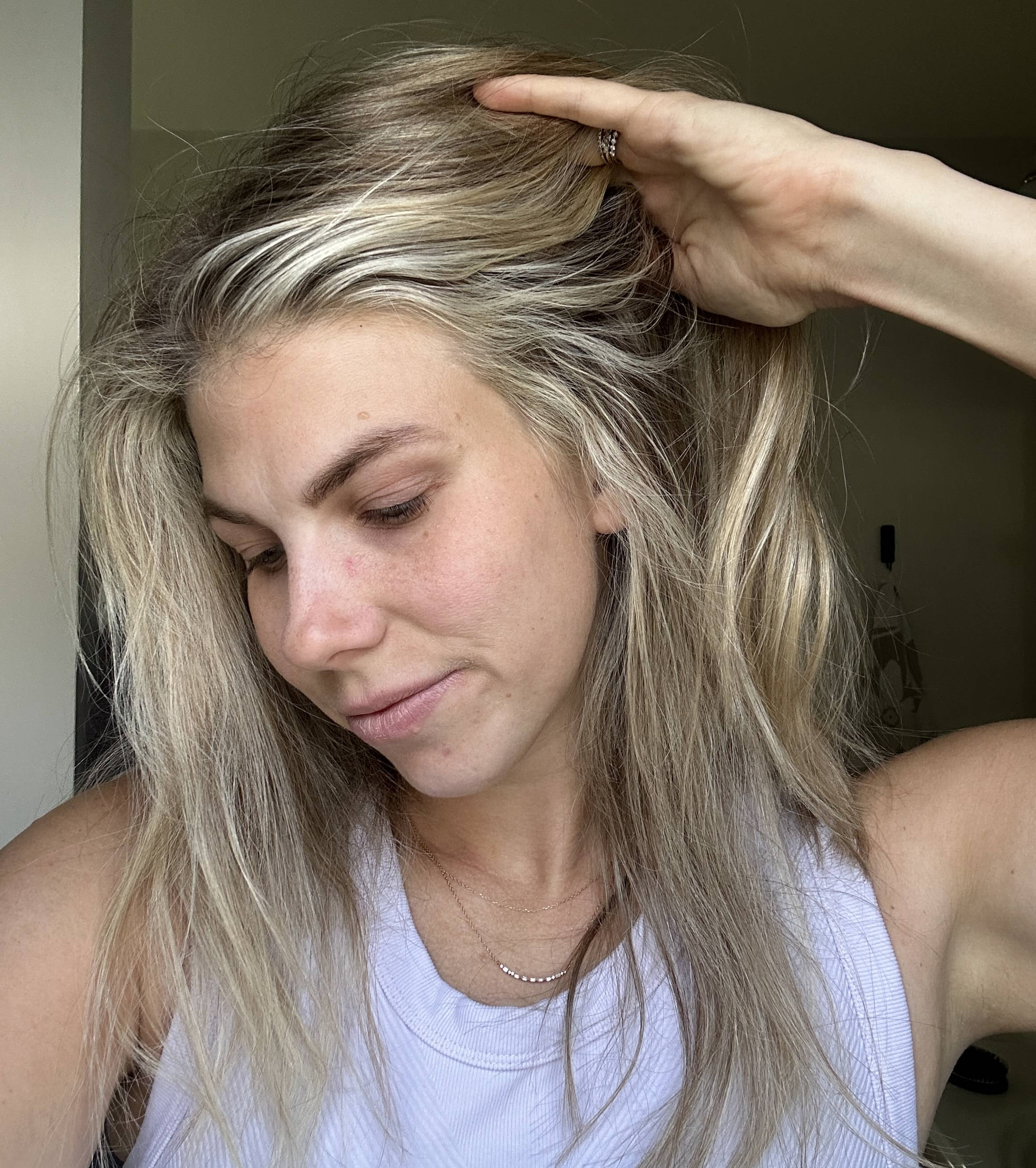 You’ll see a clear difference as your roots don't feel weighed down and your hair has more volume and shine.